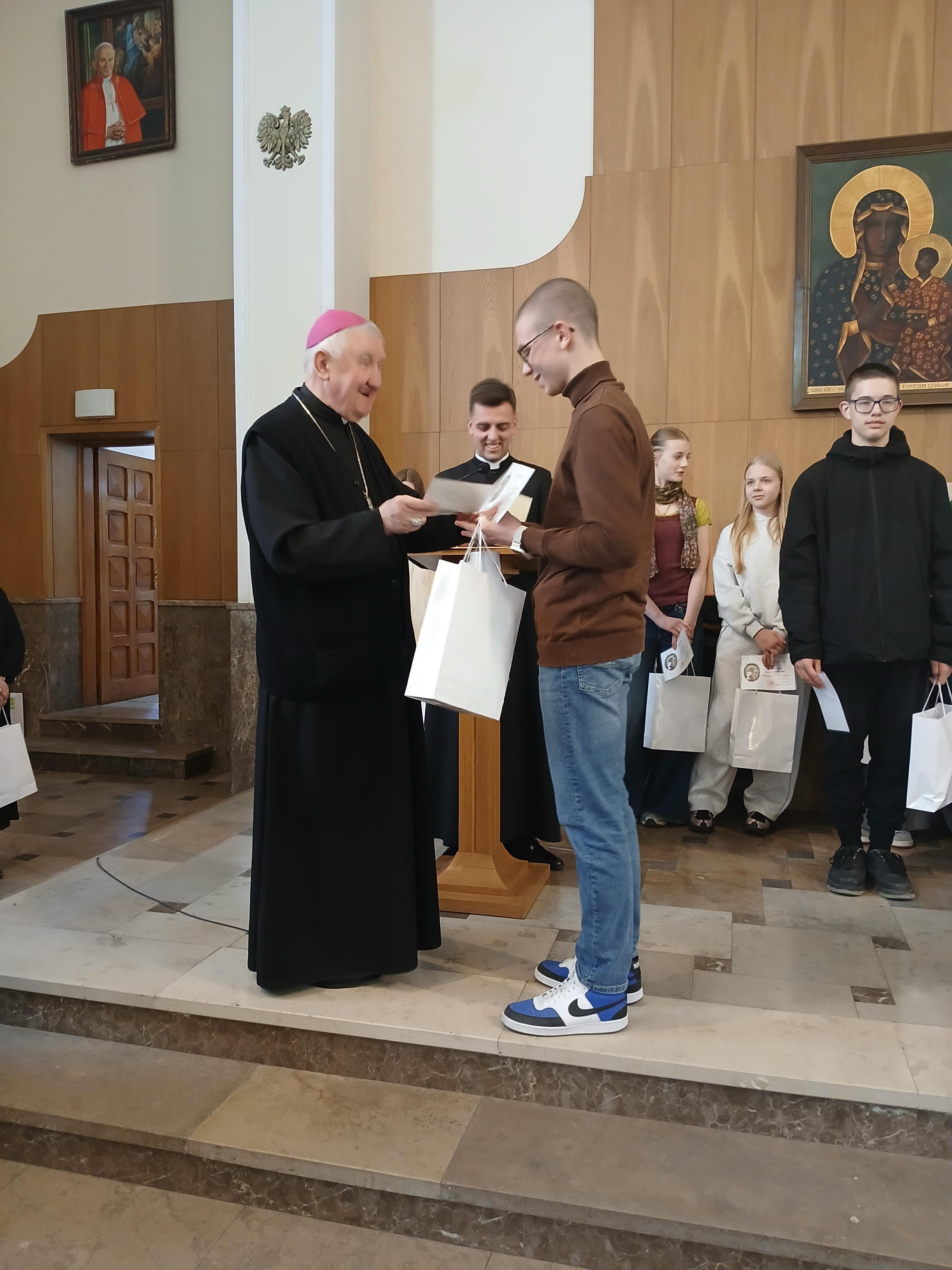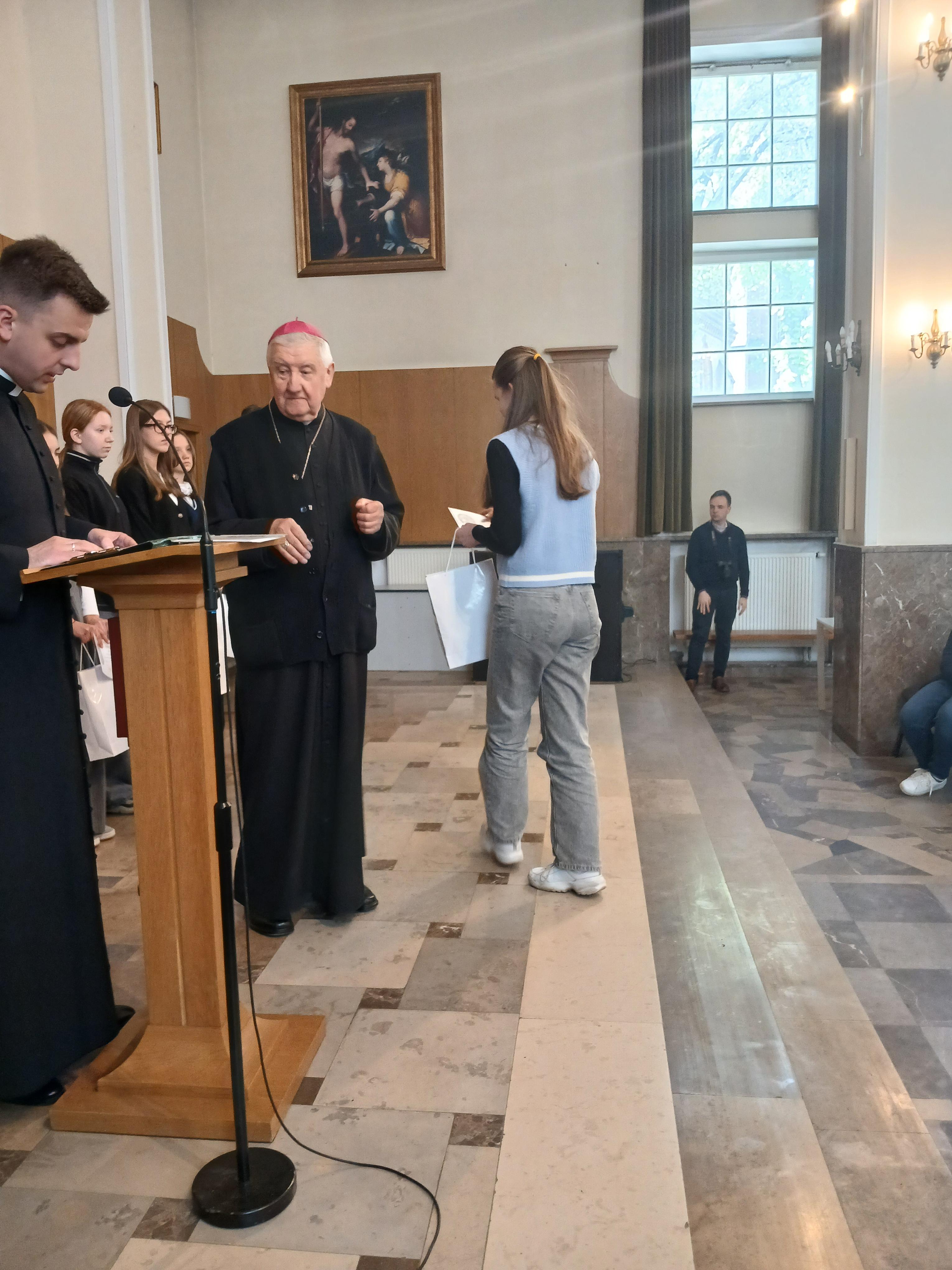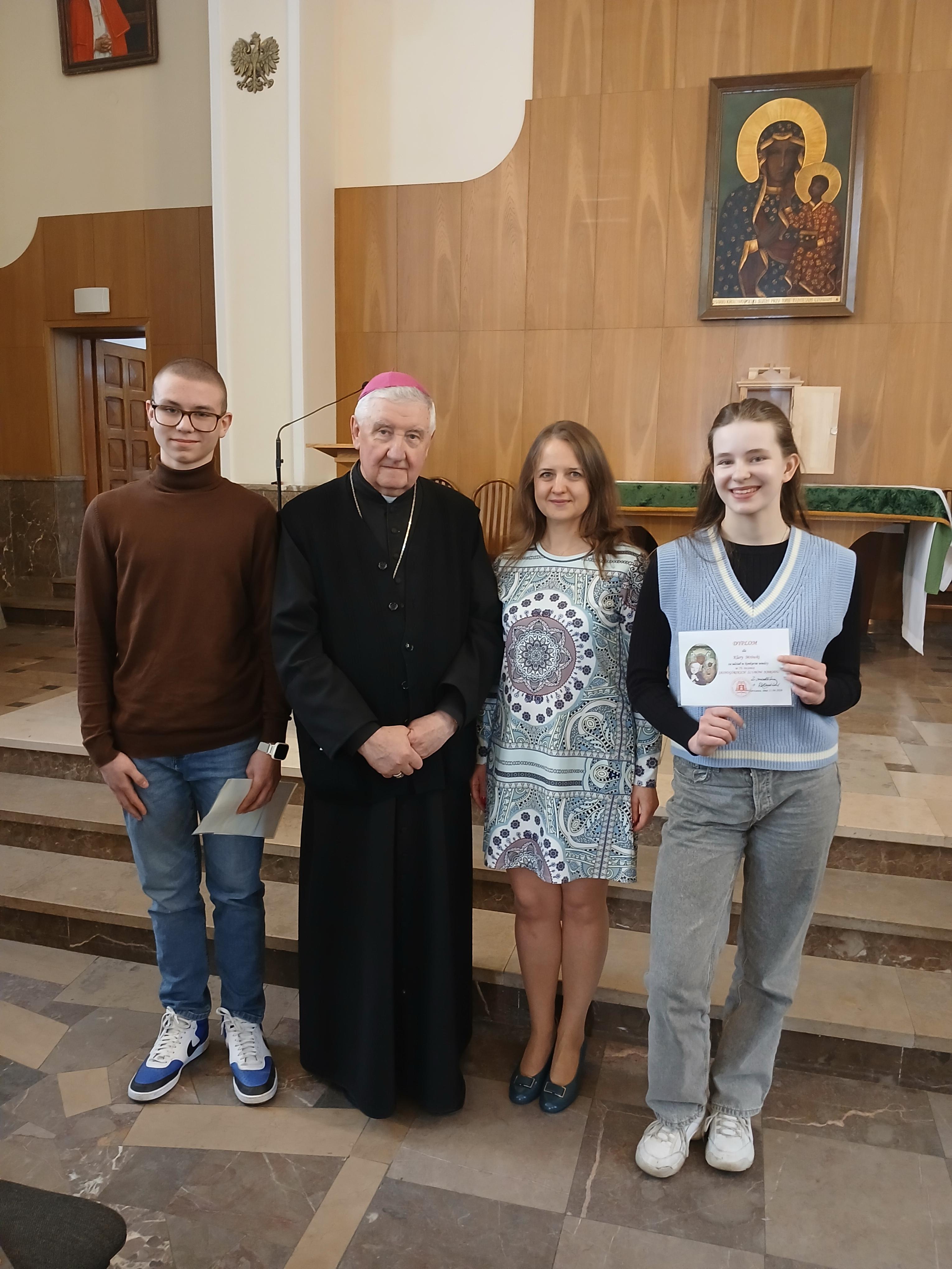na 370 rocznicę Ślubów króla Jana Kazimierza oraz 70 rocznicę Jasnogórskich Ślubów Narodu. Nasi uczniowie godnie reprezentowali szkołę, zdobywając wyróżnienie i V miejsce. Otrzymali dyplomy i upominki z rąk Księdza Biskupa Ordynariusza Romualda Kamińskiego oraz Księdza Piotra Domańskiego- Dyrektora Wydziału Nauki Katolickiej Diecezji Warszawsko-Praskiej. Na zakończenie nasi reprezentanci udzielili wywiadu dla Radia Warszawa.