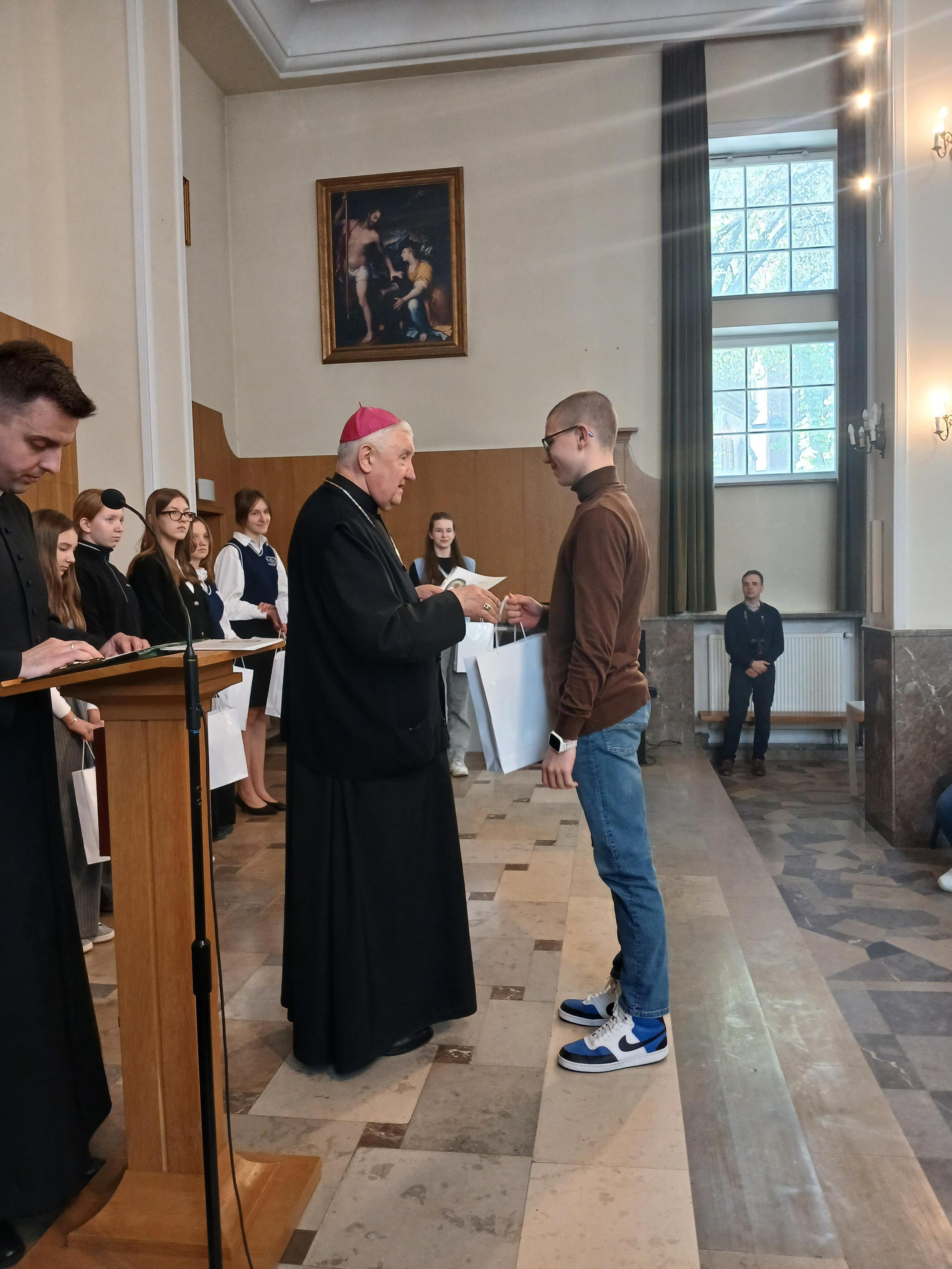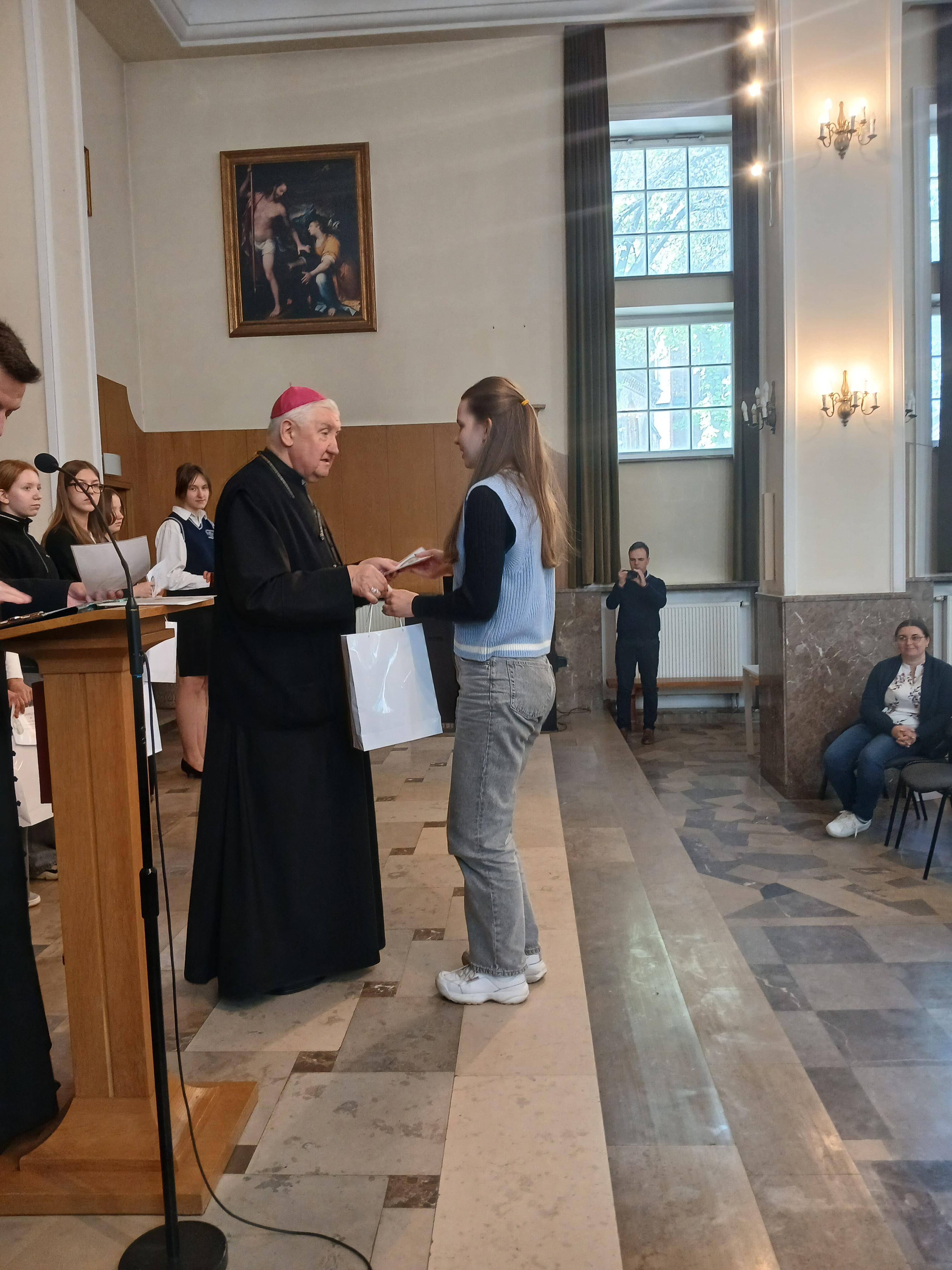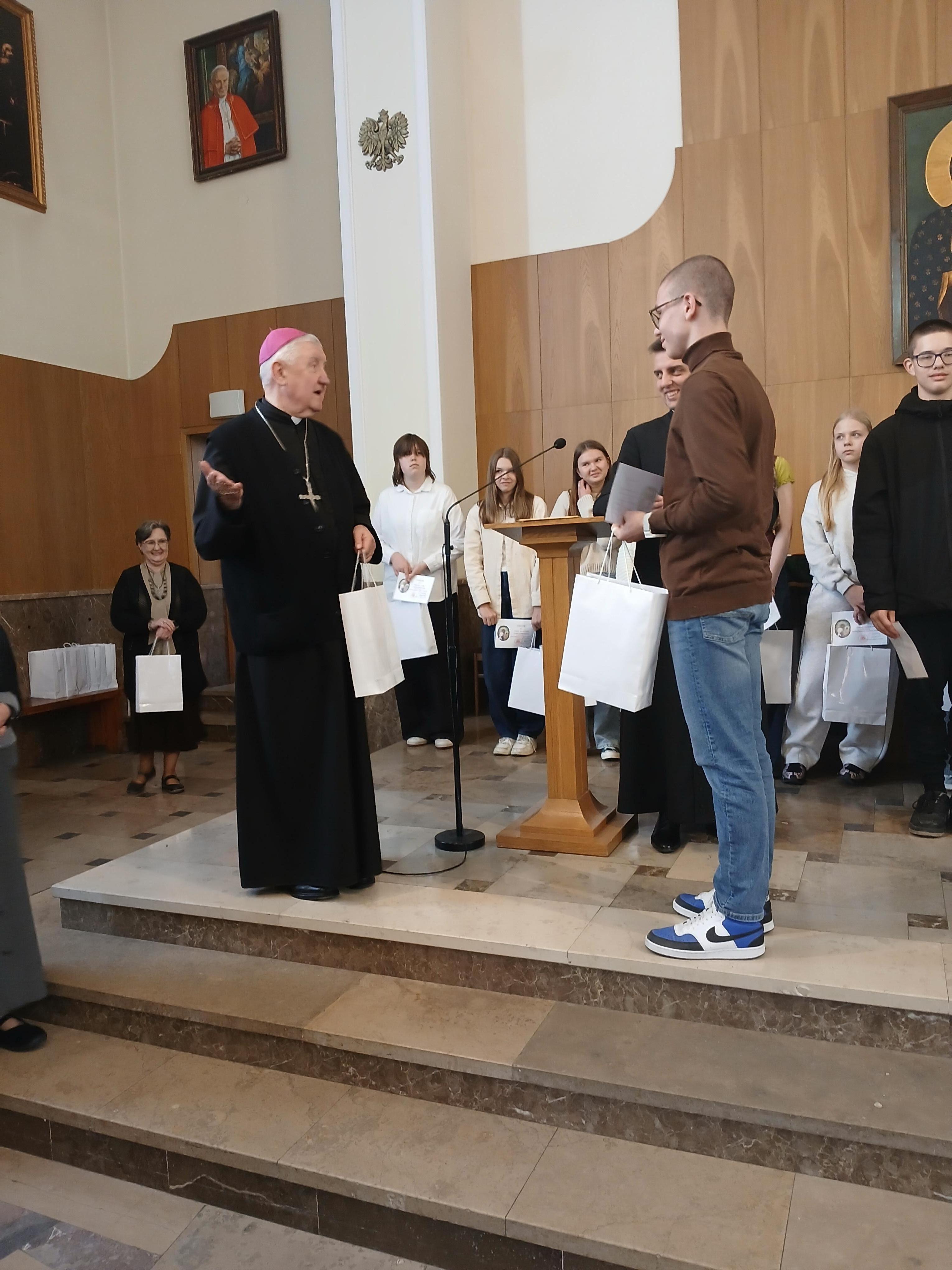 na 370 rocznicę Ślubów króla Jana Kazimierza oraz 70 rocznicę Jasnogórskich Ślubów Narodu. Nasi uczniowie godnie reprezentowali szkołę, zdobywając wyróżnienie i V miejsce. Otrzymali dyplomy i upominki z rąk Księdza Biskupa Ordynariusza Romualda Kamińskiego oraz Księdza Piotra Domańskiego- Dyrektora Wydziału Nauki Katolickiej Diecezji Warszawsko-Praskiej. Na zakończenie nasi reprezentanci udzielili wywiadu dla Radia Warszawa.