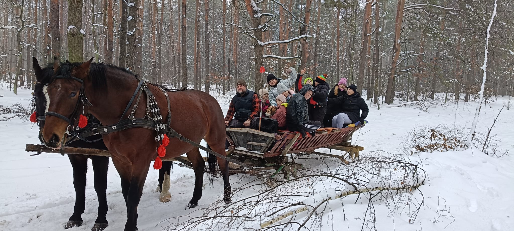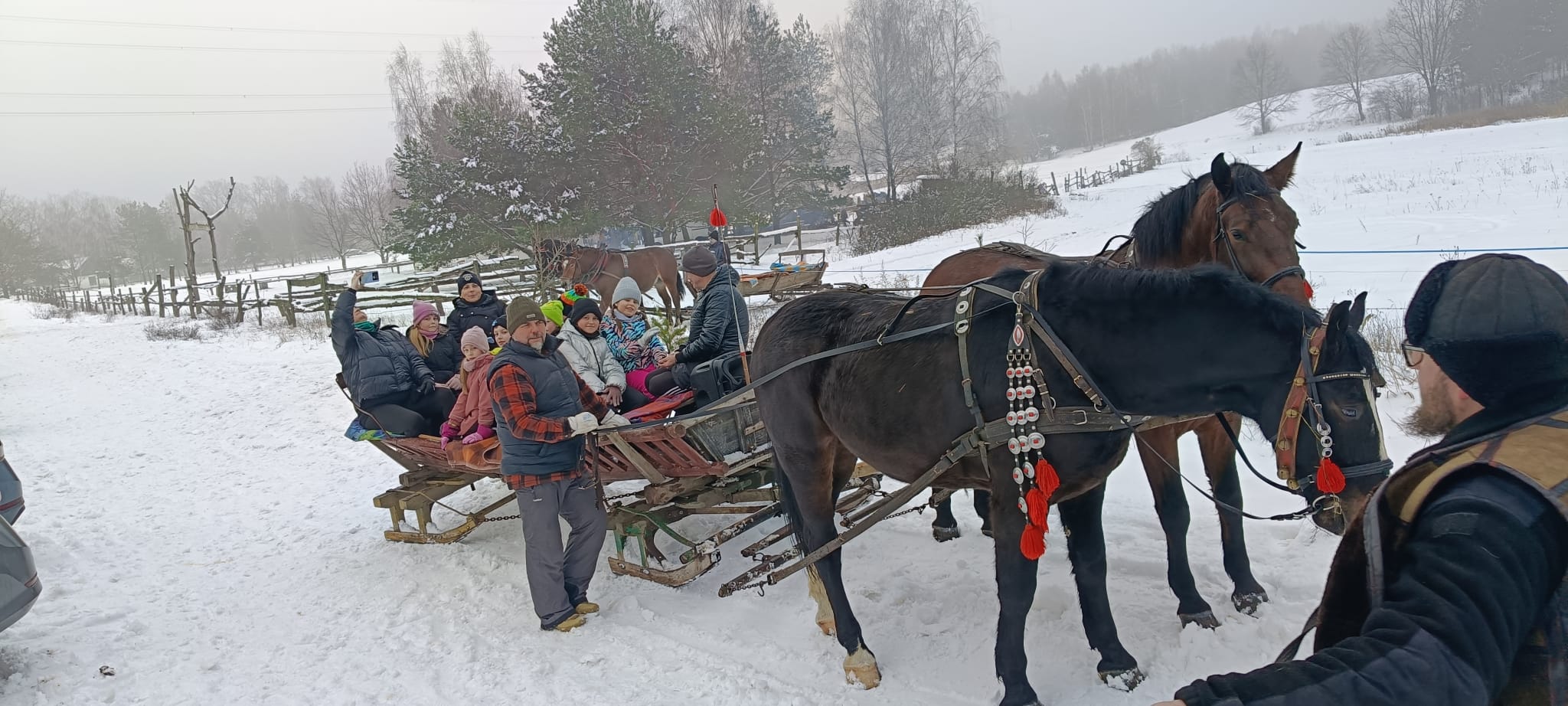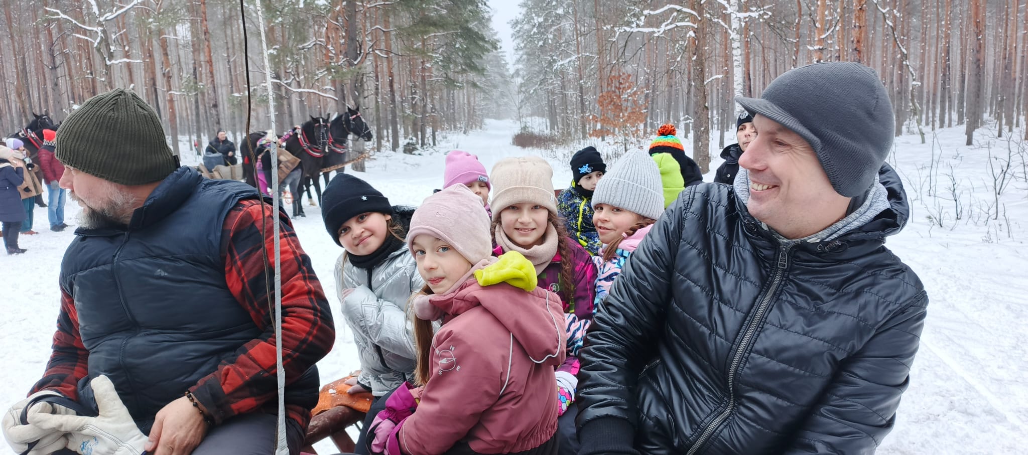 Po zakończonym kuligu czekało na nas ognisko – wspólnie piekliśmy kiełbaski i pianki, co było idealnym zwieńczeniem tego pełnego radości dnia.
