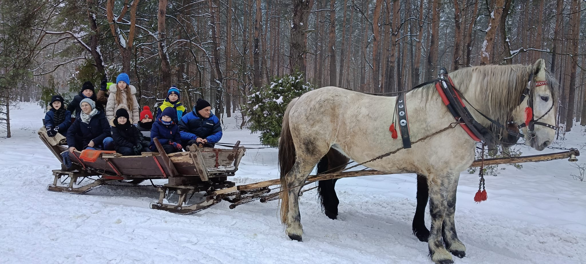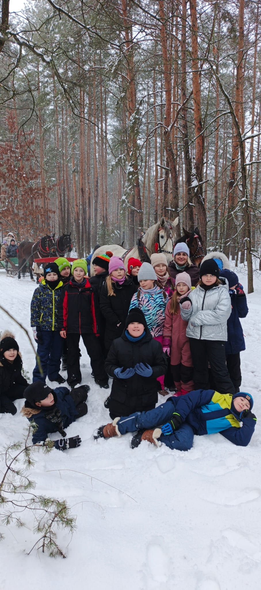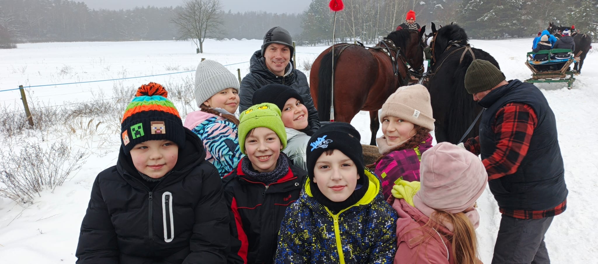Po zakończonym kuligu czekało na nas ognisko – wspólnie piekliśmy kiełbaski i pianki, co było idealnym zwieńczeniem tego pełnego radości dnia.