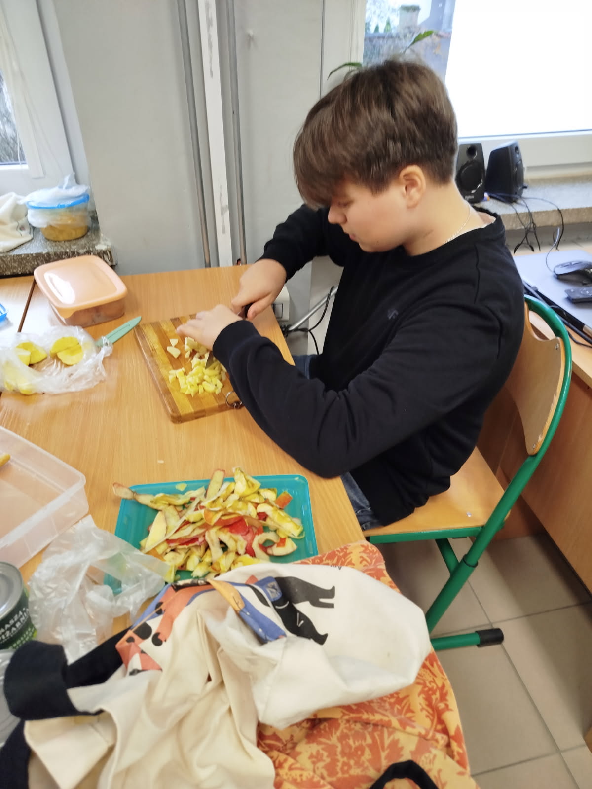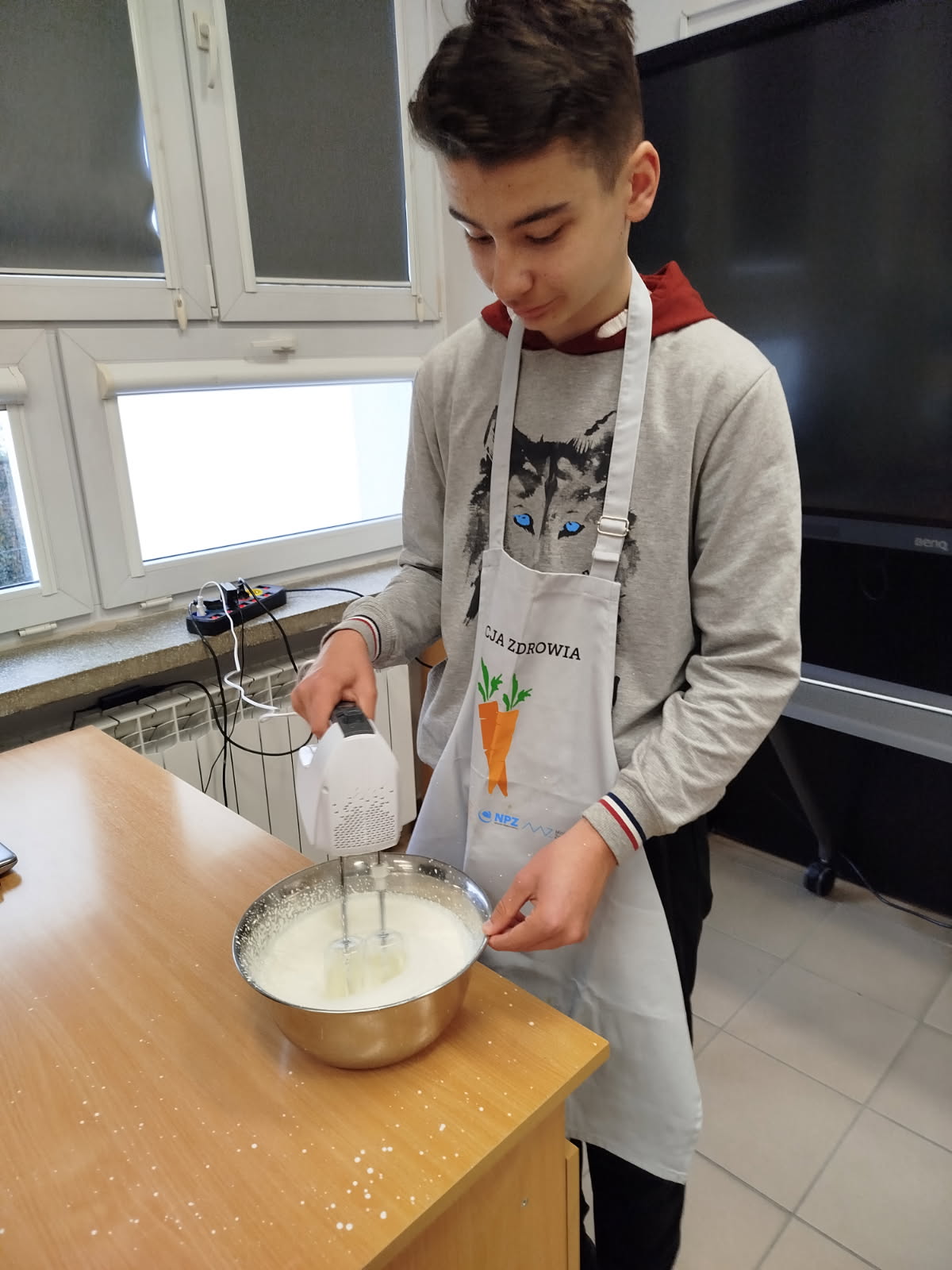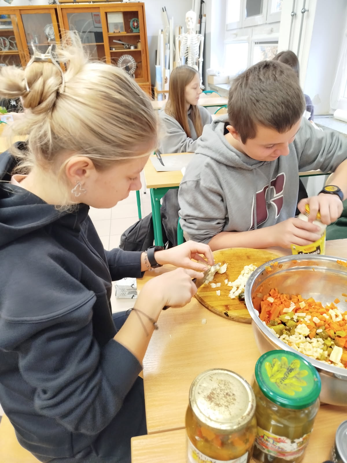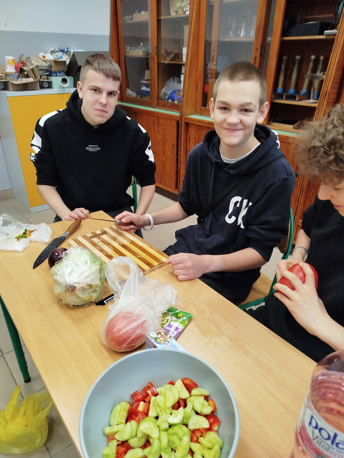 W ramach zajęć z edukacji zdrowotnej uczniowie przygotowywali zdrowe, pełne witamin sałatki oraz prawdziwe, domowe masło śmietankowe.