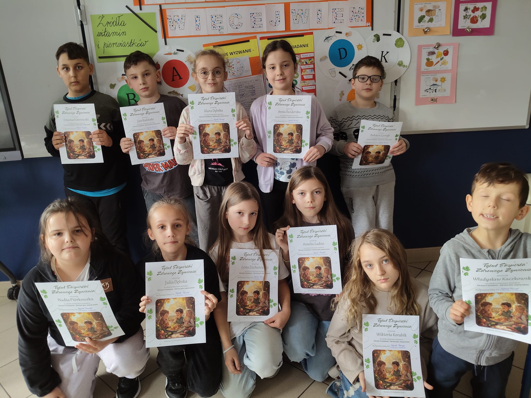Efekt? Każdy uczeń uzbierał imponującą liczbę punktów za swoje wzorowe drugie śniadania! Na zakończenie wszyscy otrzymali pamiątkowe dyplomy z tytułem „Ekspert Zdrowego Żywienia".