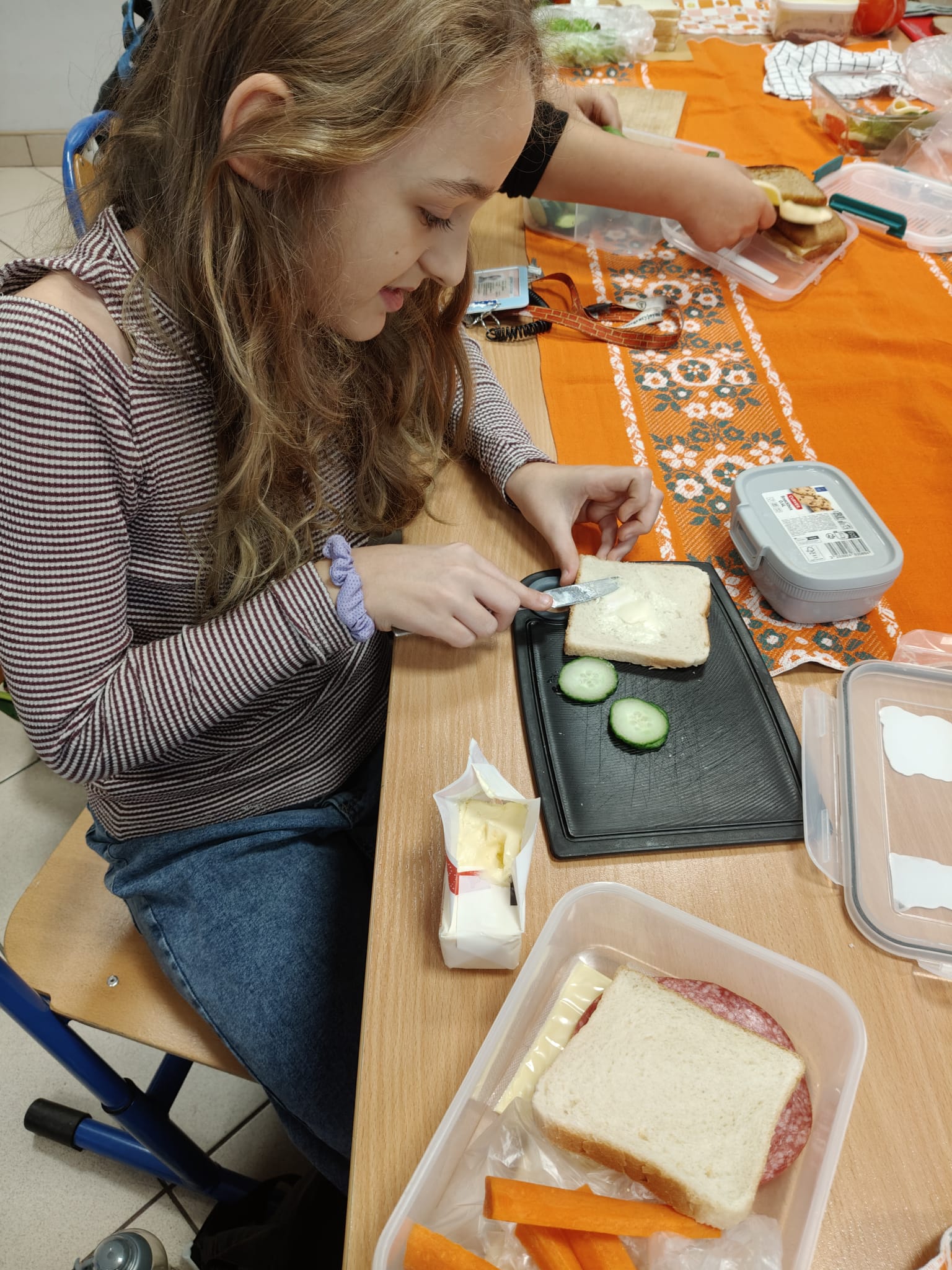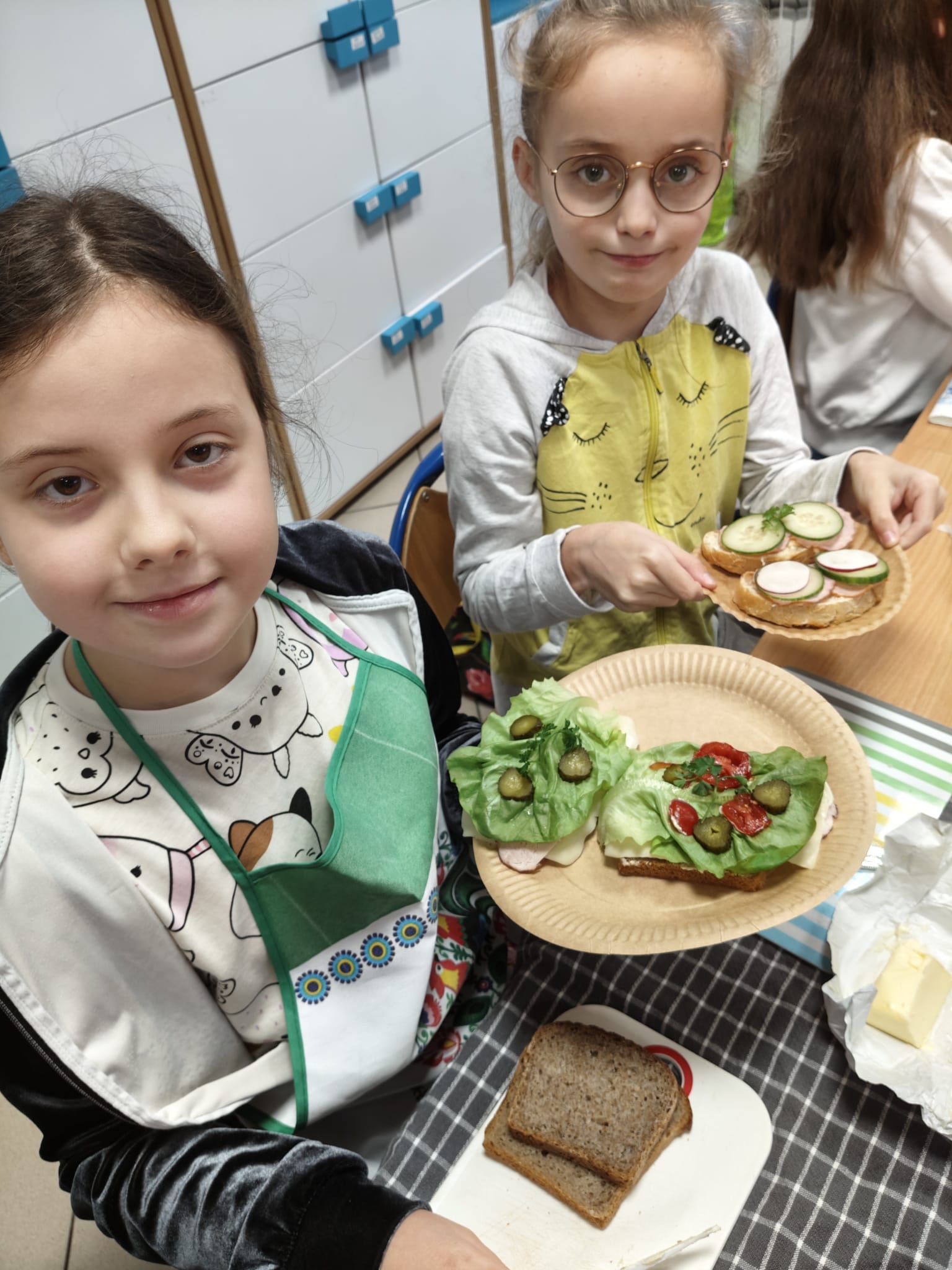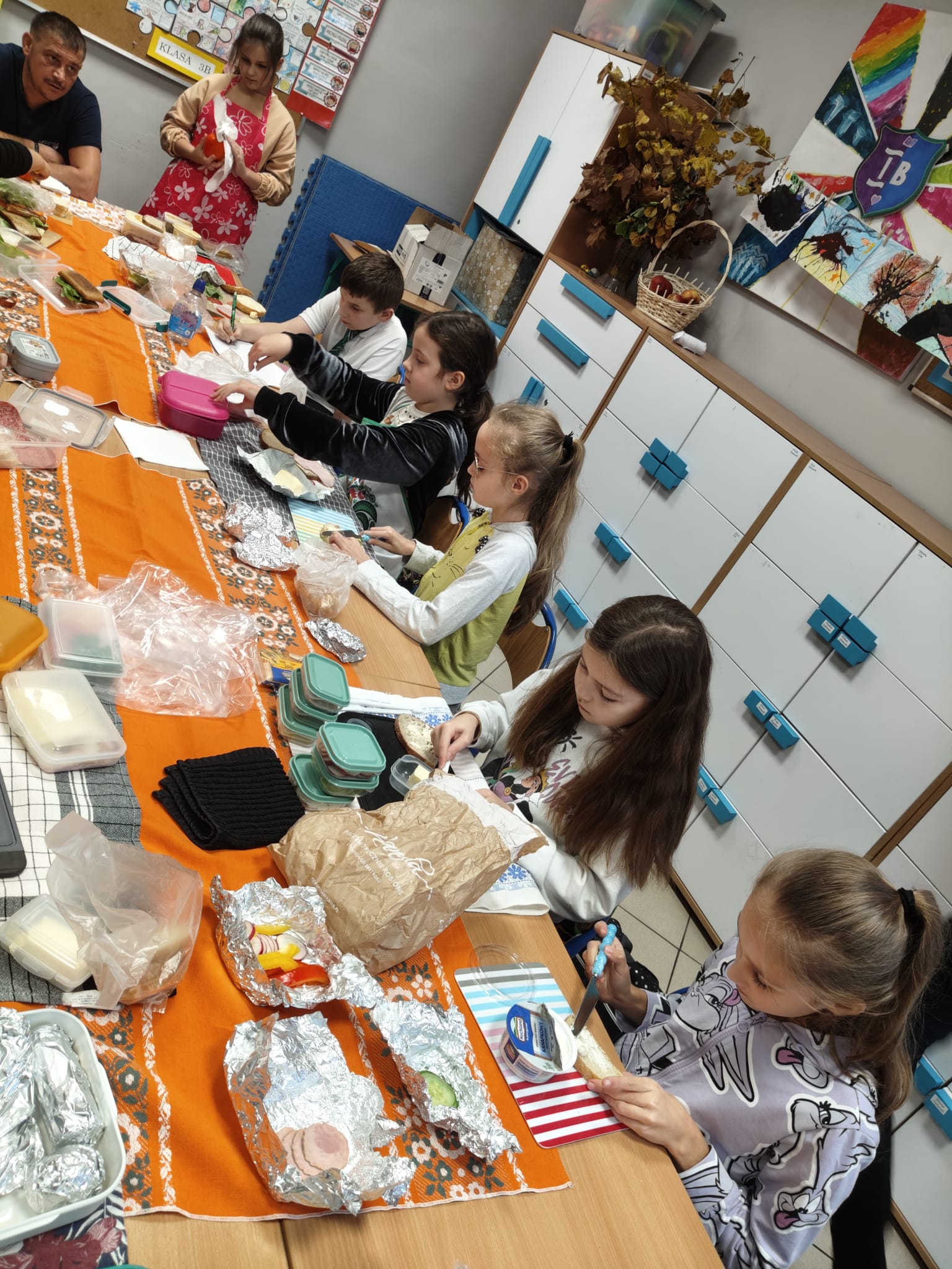 Później ruszyliśmy z klasowym wyzwaniem „Zdrowe II śniadanie”. Przez cały tydzień nasi „eksperci ds. żywienia” sprawdzali zawartość śniadaniówek swoich kolegów i koleżanek. Każdy zdrowy produkt — warzywa, owoce, pełnoziarniste pieczywo, nabiał czy orzechy — oznaczał plusik do zdobycia.