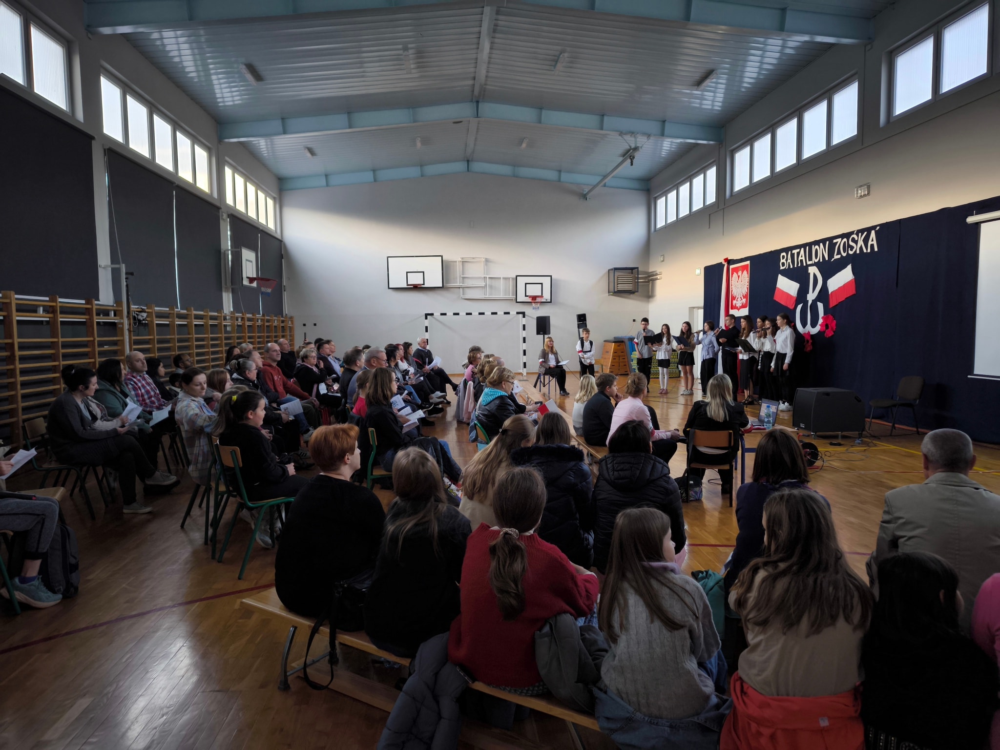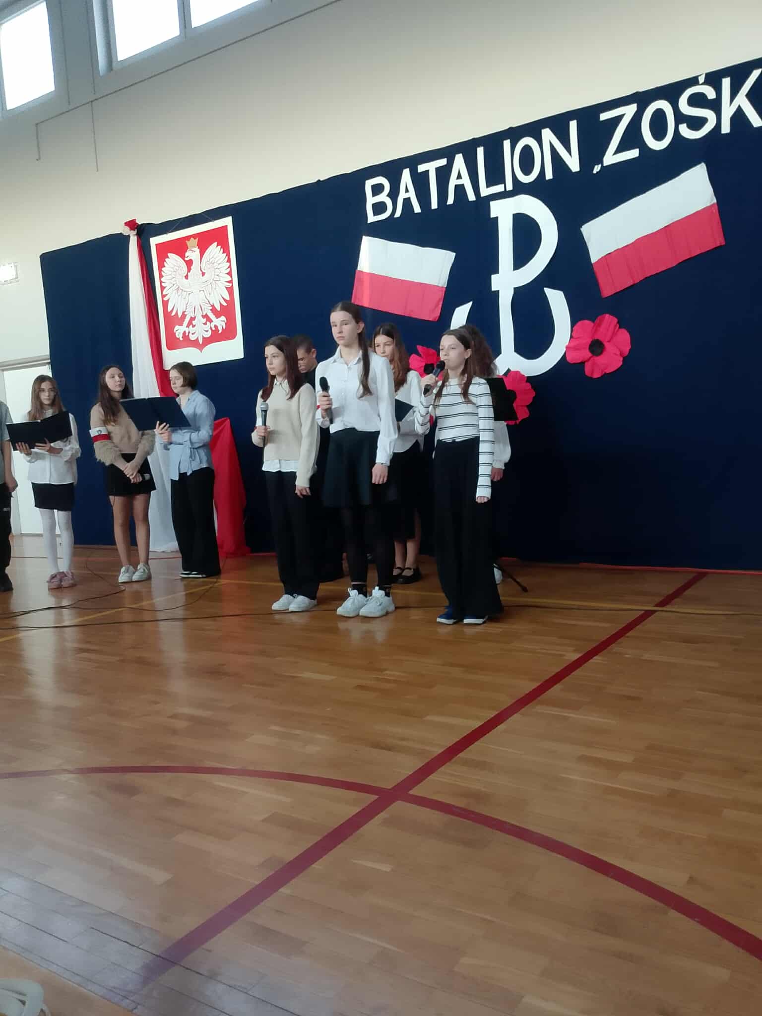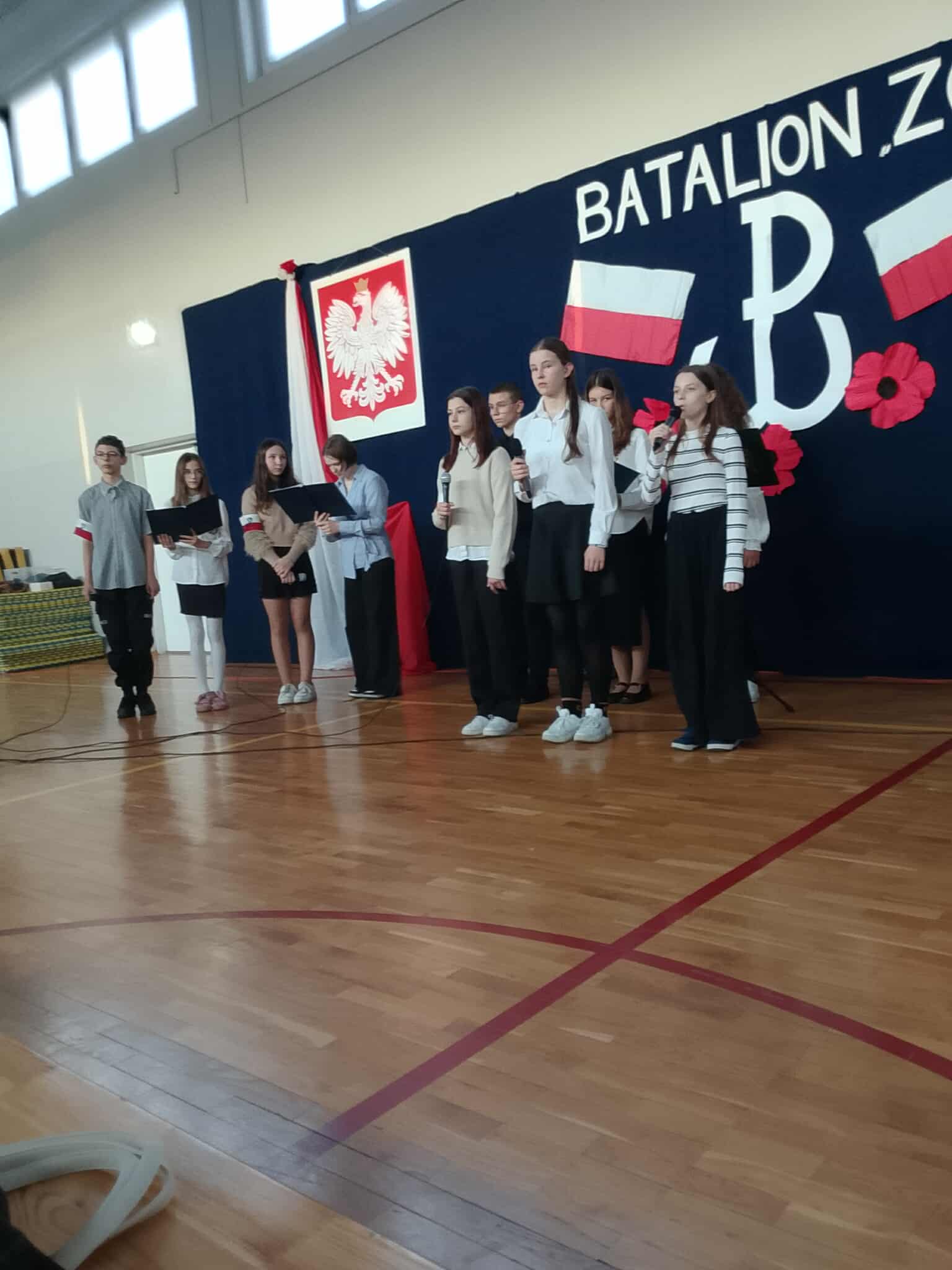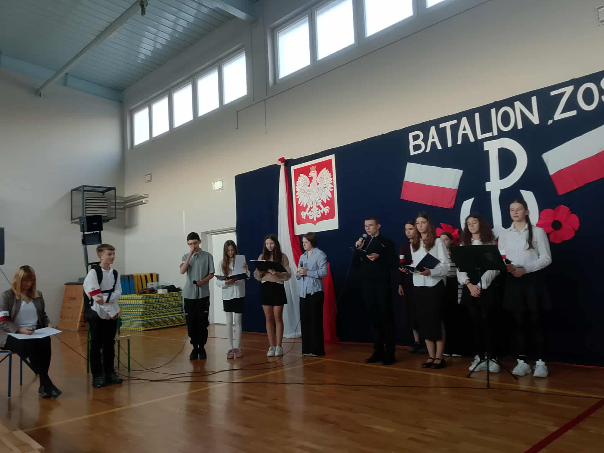 Pod czujnym okiem p. Karoliny Mojko i p. Anny Chruściel uczniowie klasy 7b przygotowali wzruszający program artystyczny, który zgromadził całe pokolenia – od najmłodszych po najstarszych. Wspólne śpiewanie i chwile refleksji stały się pięknym hołdem oddanym bohaterom Powstania Warszawskiego, a w szczególności żołnierzom Batalionu „Zośka”, którego imię z dumą nosi nasza szkoła.