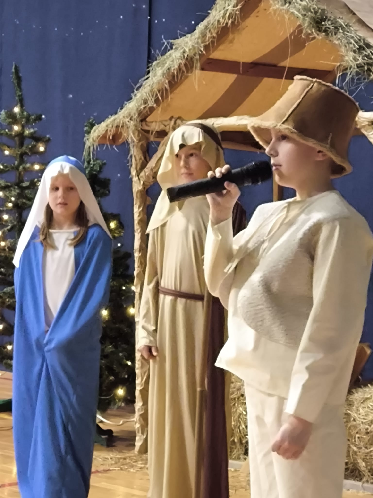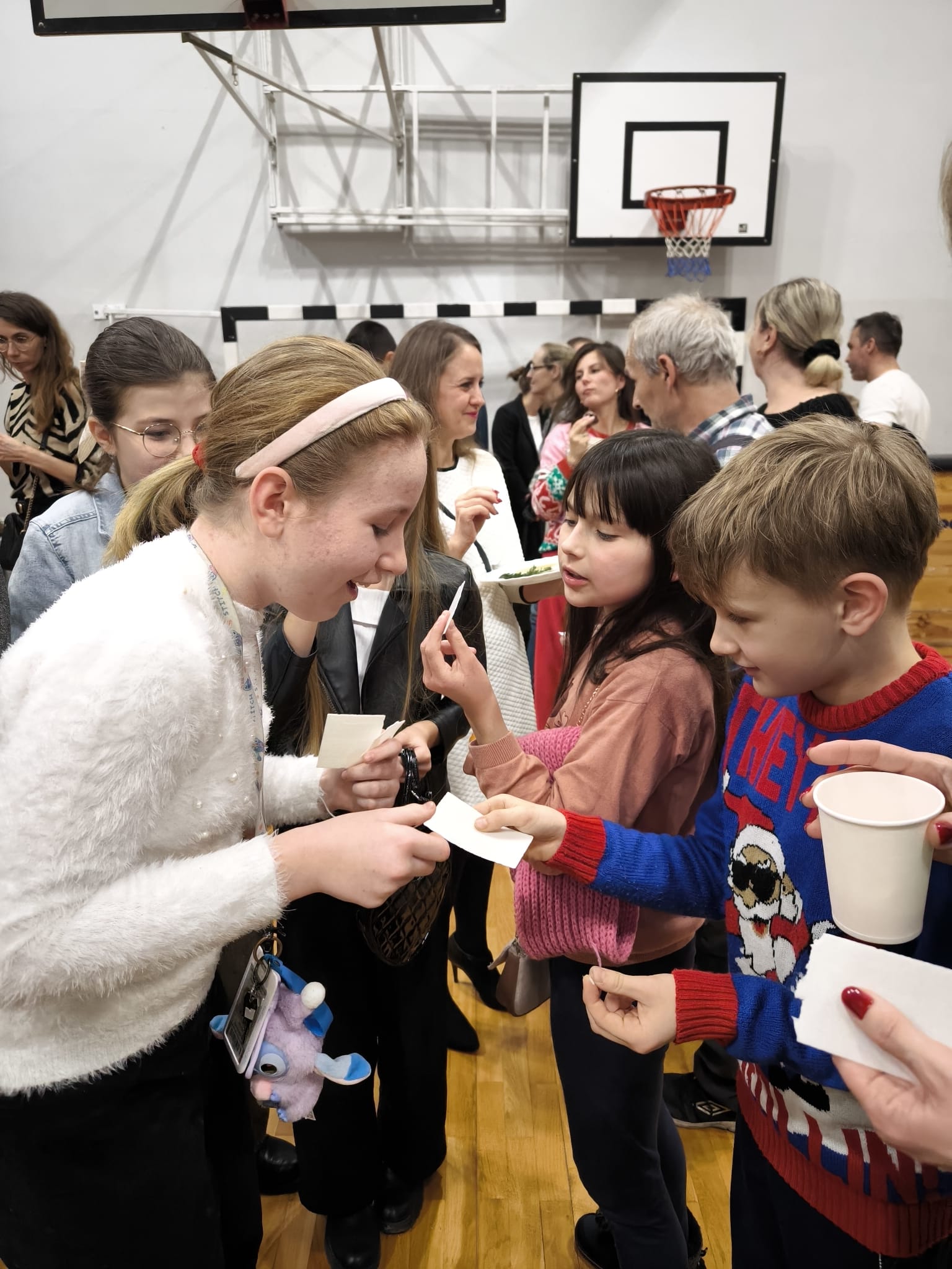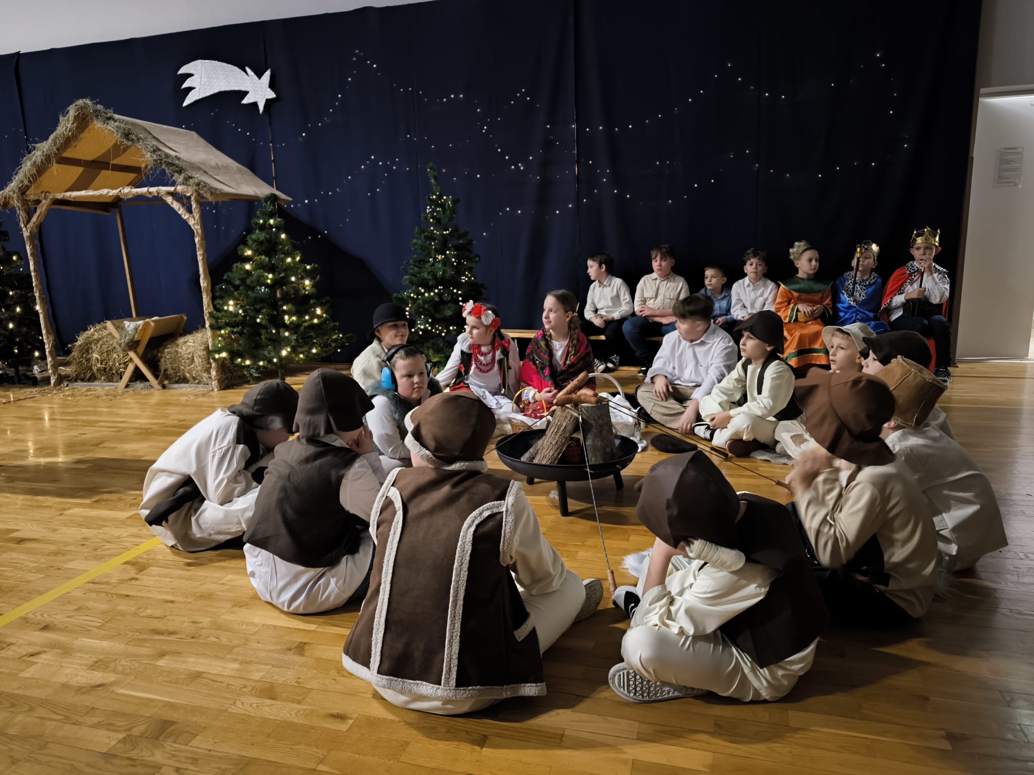 Spotkanie rozpoczęły piękne jasełka w wykonaniu klas 2a i 3b, które wprowadziły nas w bożonarodzeniowy nastrój. Następnie wysłuchaliśmy fragmentu Ewangelii odczytanej przez ks. Jacka Skoczylasa, a serdeczne życzenia świąteczne przekazali dyrektor szkoły oraz Rada Rodziców .