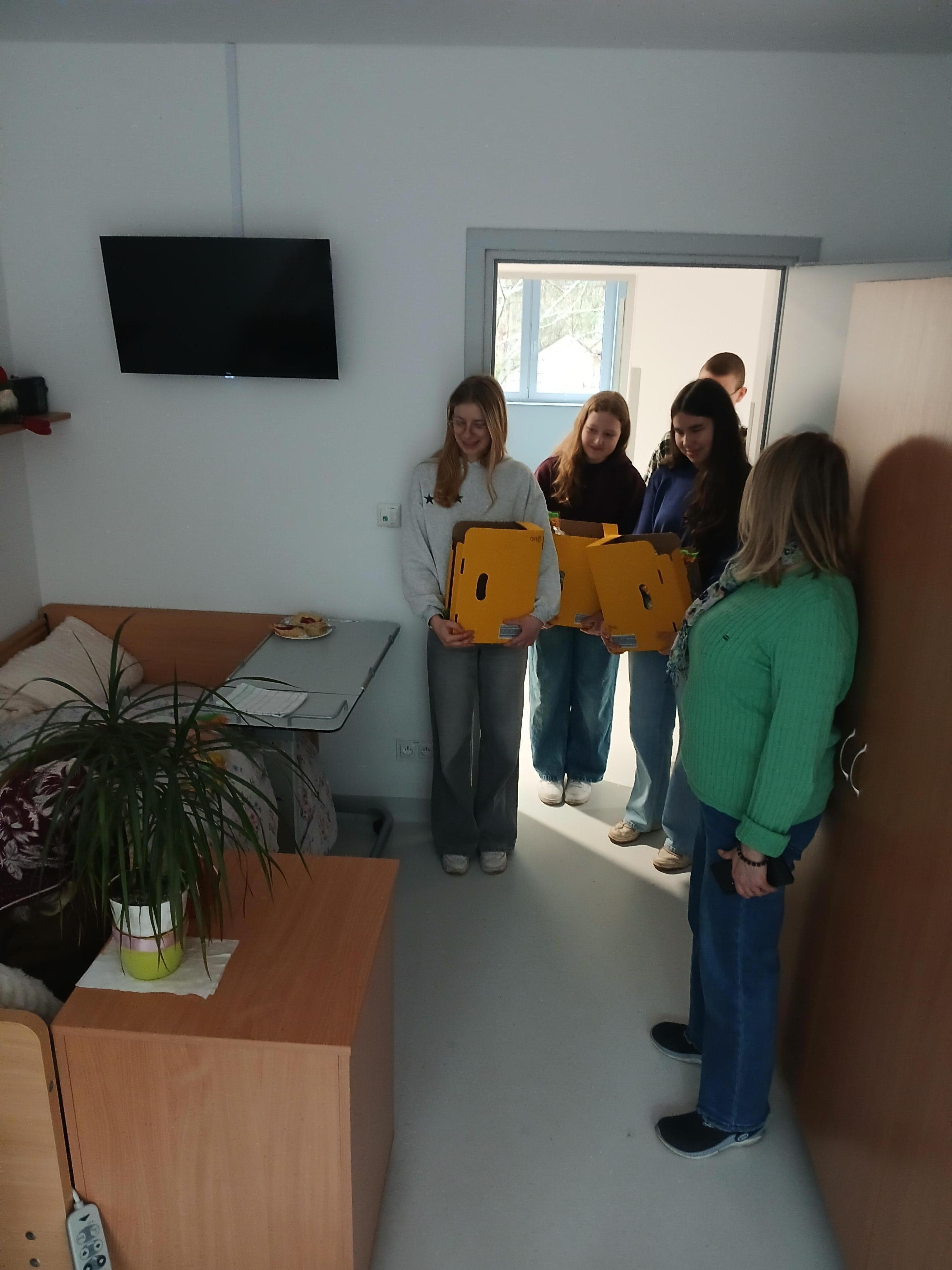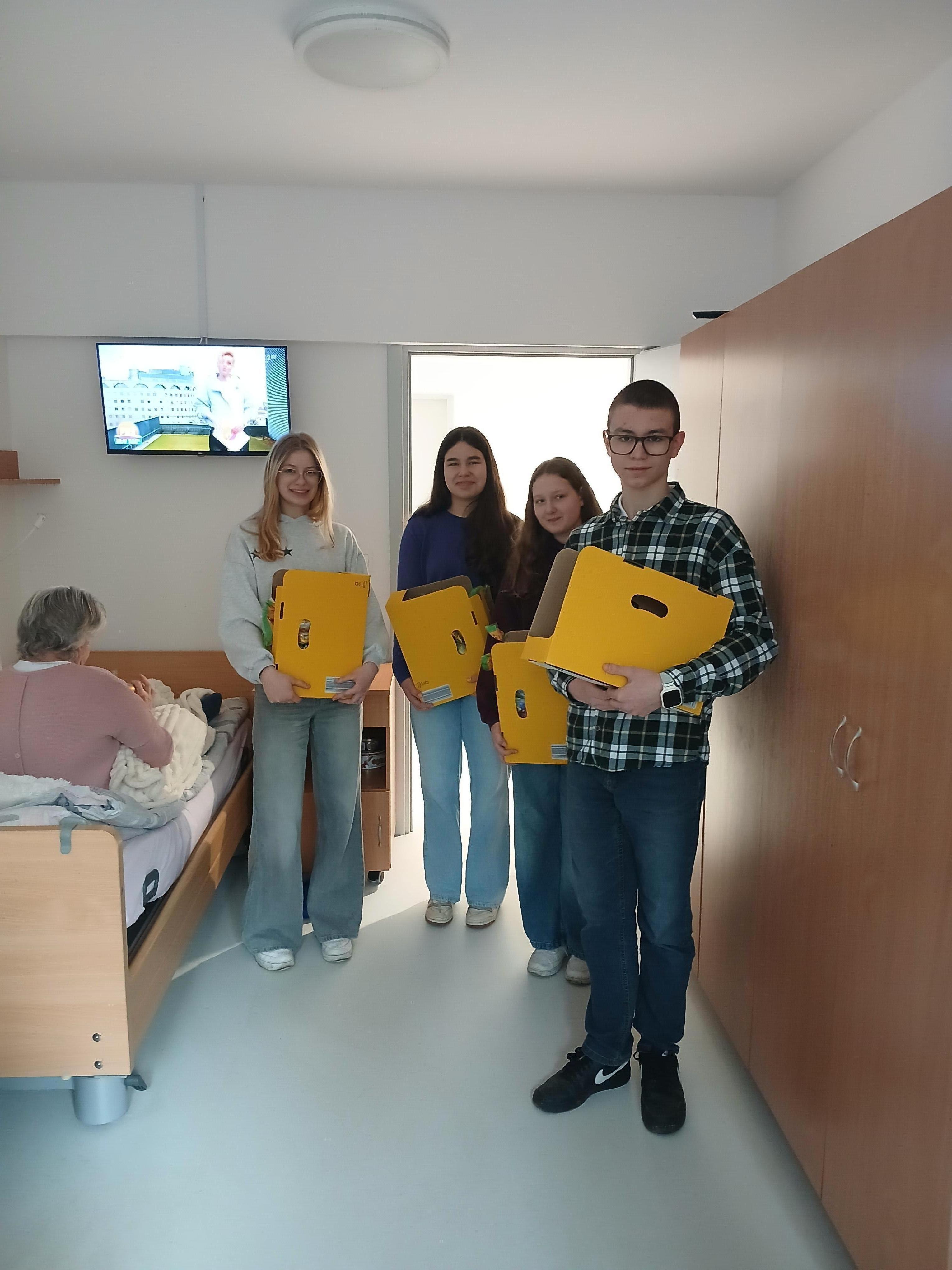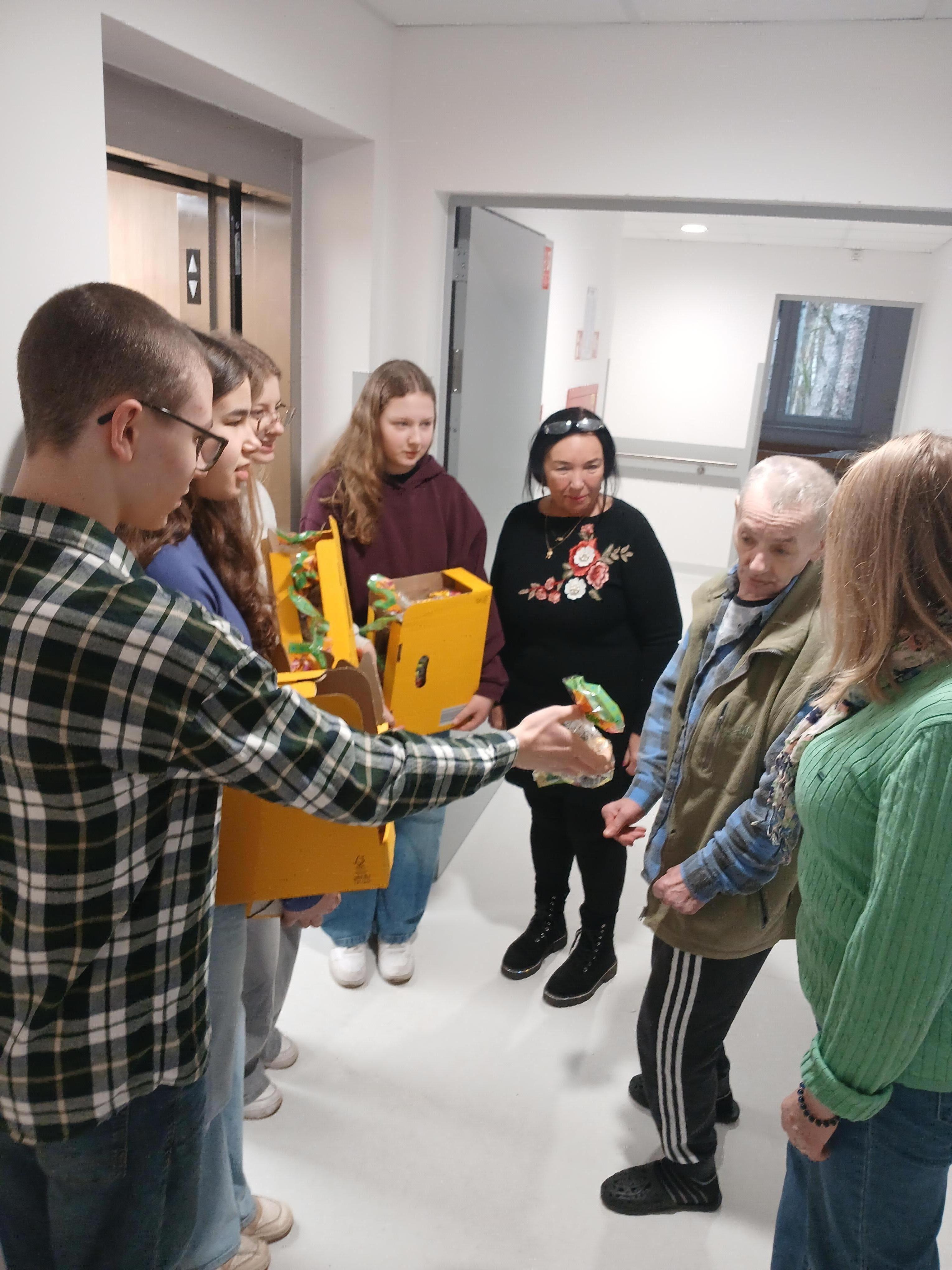 26.03.2026 r. uczniowie SP 7: przewodnicząca SU Marta L., zastępca -Jan K. a także Ania R., Małgosia N. razem z opiekunem SU- p. Agnieszką Adamowicz odwiedzili Dom Pomocy Społecznej ,,Wrzos" w Otwocku. Zbliżające się Święta Wielkanocne były okazją do złożenia życzeń oraz wręczenia drobnych upominków seniorom. Spotkanie z pensjonariuszami, rozmowy, życzenia były dla nas kolejną lekcją empatii i zrozumienia potrzeb przebywających tam osób. Gościnność p. Dyrektor tego miejsca pozwoliła nam na rozmowy o życiu, wyborach, pracy z osobami starszymi. Uczniowie zostali zaproszeni do kolejnych wizyt i współpracy.