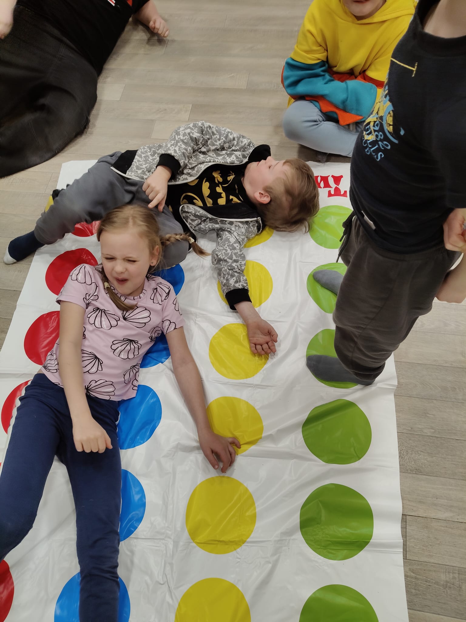 Uczniowie spędzili popołudnie na świetnej zabawie podczas gry w Twistera . Nie zabrakło śmiechu, gimnastyki i odrobiny zdrowej rywalizacji. Dzieci z ogromnym zaangażowaniem próbowały utrzymać równowagę i wykonywać kolejne zadania, co dostarczyło wszystkim mnóstwo radości.