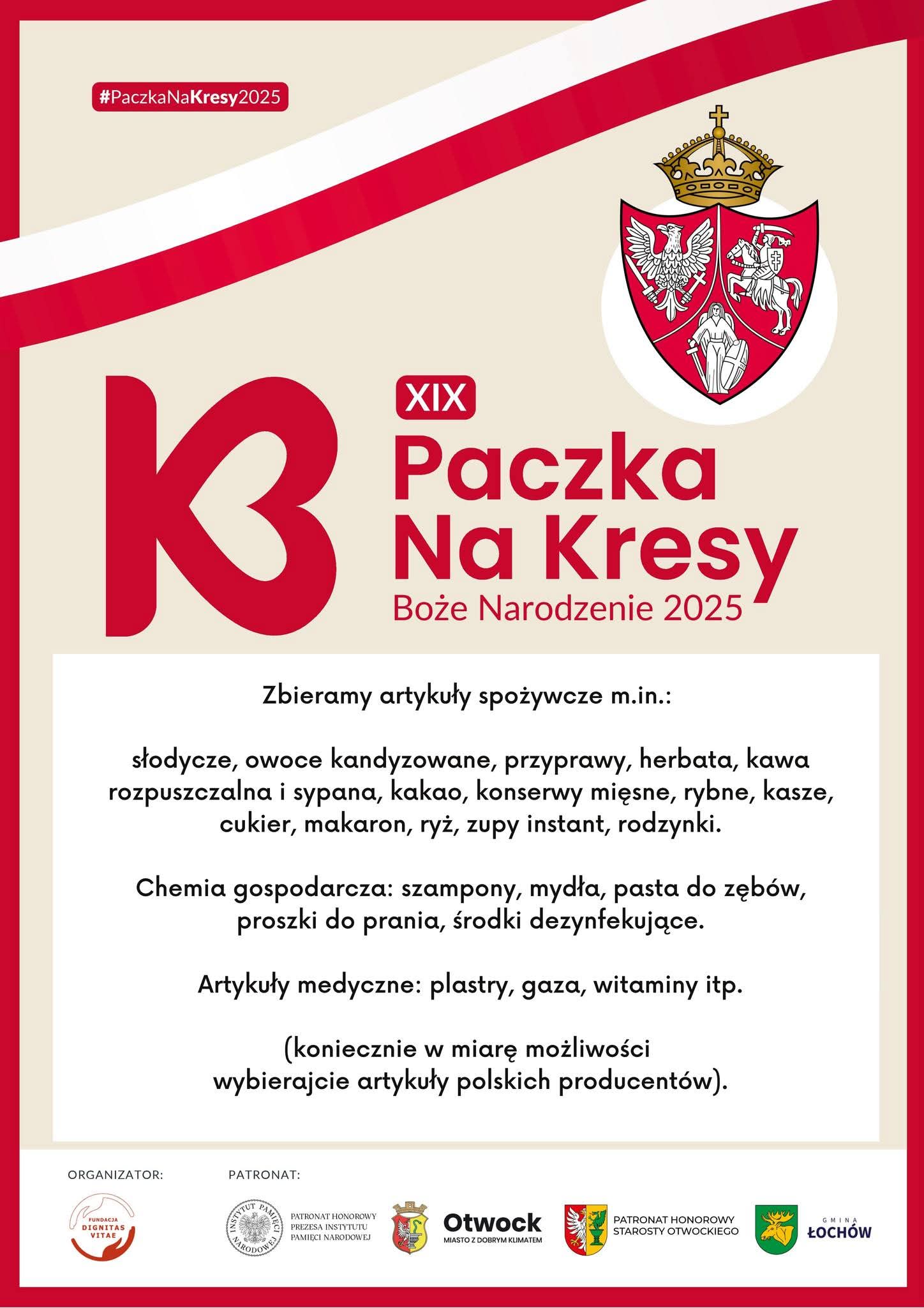 Już po raz dziewiętnasty do udziału w świątecznej zbiórce #PaczkaNaKresy zapraszamy Wolontariuszy, Opiekunów i wszystkich chętnych do pomocy w zbiórce żywności do paczki. Zgromadzone dary trafią do potrzebujących rodzin dając im poczucie łączności i pamięci podczas Świąt Bożego Narodzenia.