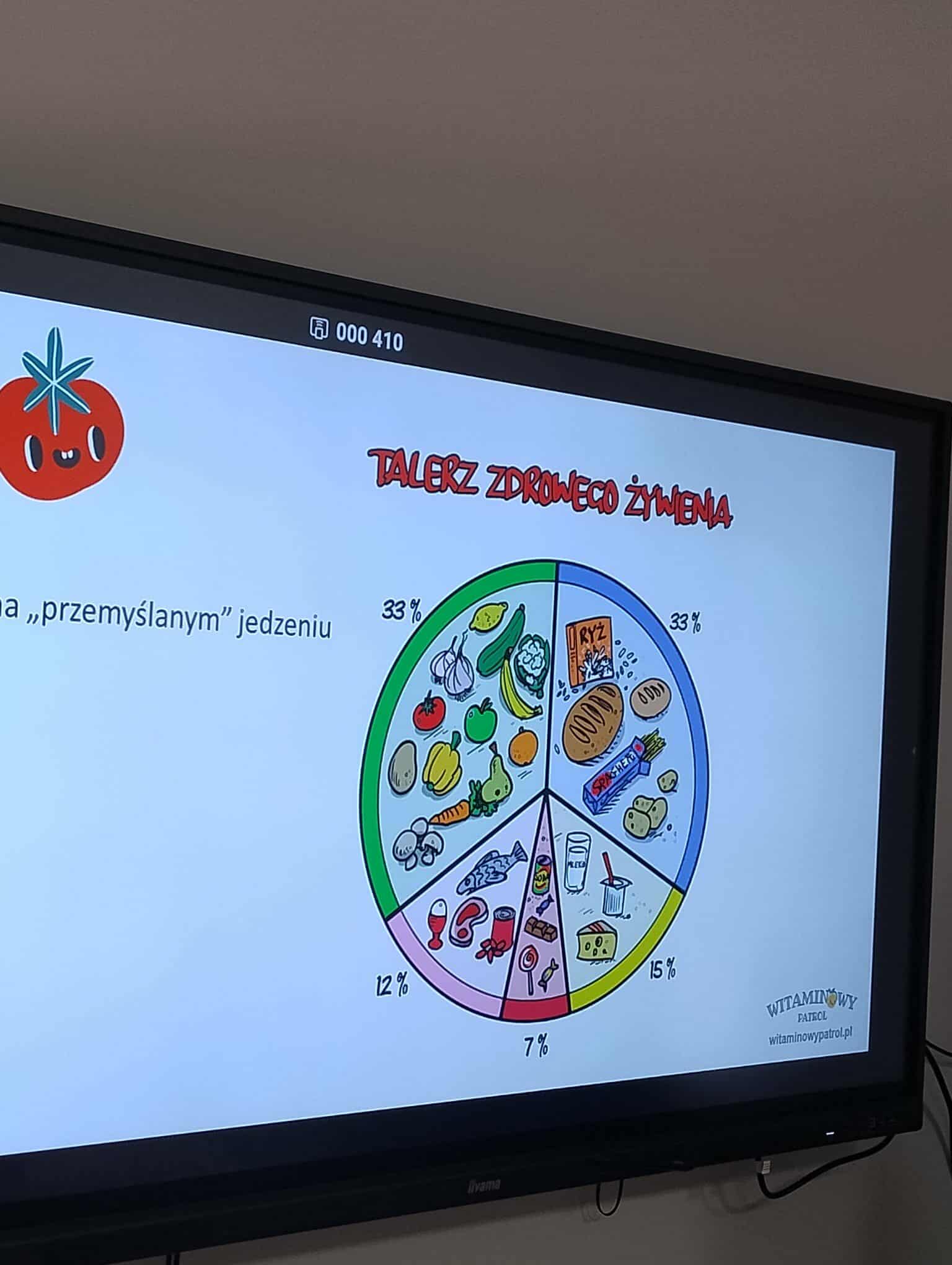 Starsze klasy zagłębiły się w temat chorób dietozależnych – m.in. cukrzycy typu 2, otyłości i nadciśnienia. Wspólnie analizowali, jak jedzenie wpływa na poziom cukru we krwi, a następnie w grupach tworzyli własne zdrowe talerze o wartości 1000 kcal. Na koniec odbyła się dyskusja o błędach żywieniowych i sposobach, jak ich unikać.
